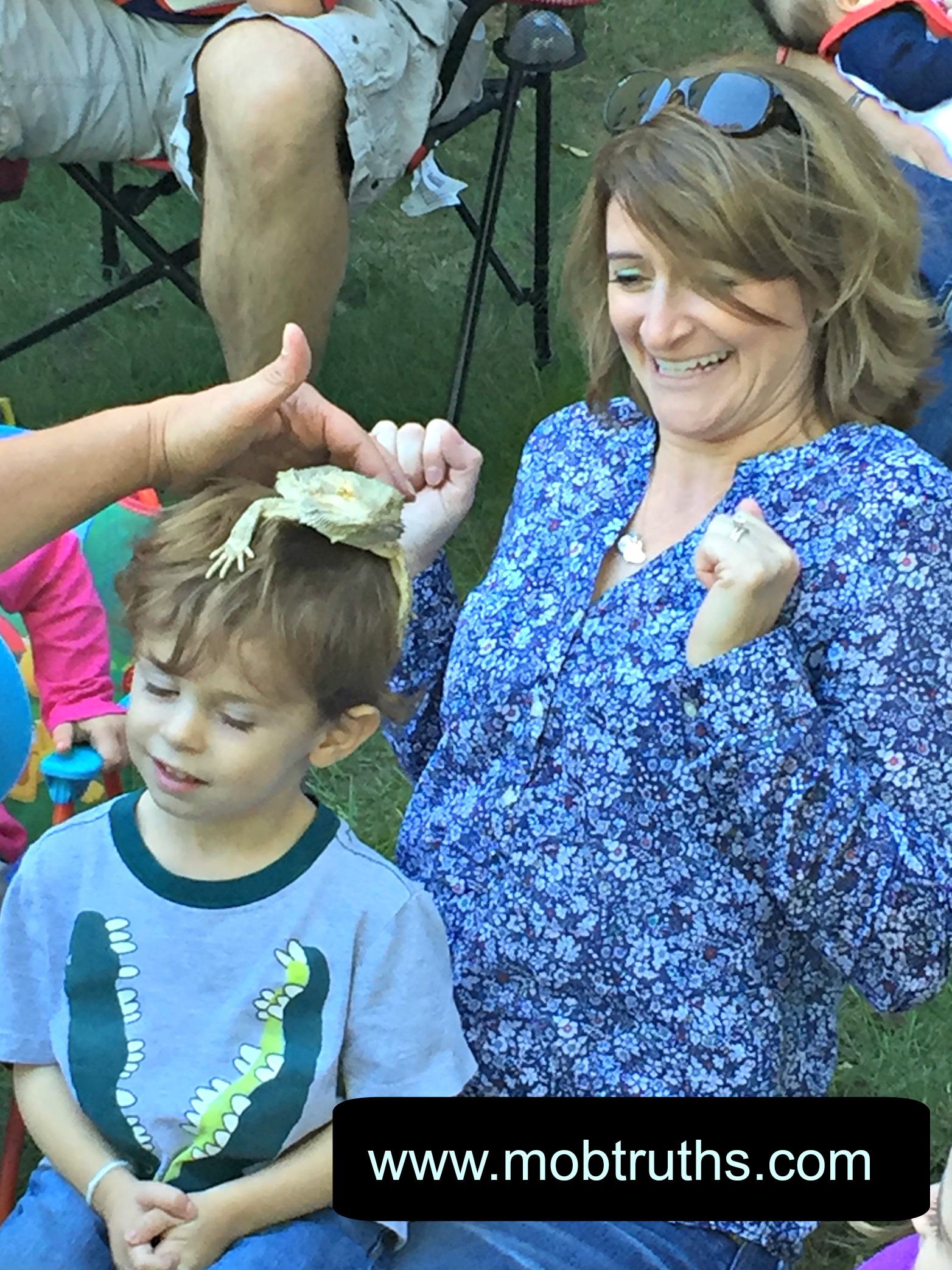 And then what happened? Â We had a great party, filled with smiles and snacks and sunshine and yes, an animal theme. Â I wonder if anyone noticed. Â We took lots of pictures, but when I look at them now, I see that they are not quite Pinterest material. Â But that’s ok. Â They are snapshots of my final baby‘s 3rd birthday. Â Of the amazing friends who came to celebrate and eat the darn animal cake with me. Â Of a little boy who stole my heart and made my life as the mother of boys even more complete. Â Of me cringing as my sons held a snake around their neck or let a lizard sit on their head, and how they loved every minute of it. Â And, of course, of D’s dinosaur shirt, reminding me of the moment I almost let my desire to connect and share my ideas (and, yes, get some credit for them) overtake what really mattered that day.